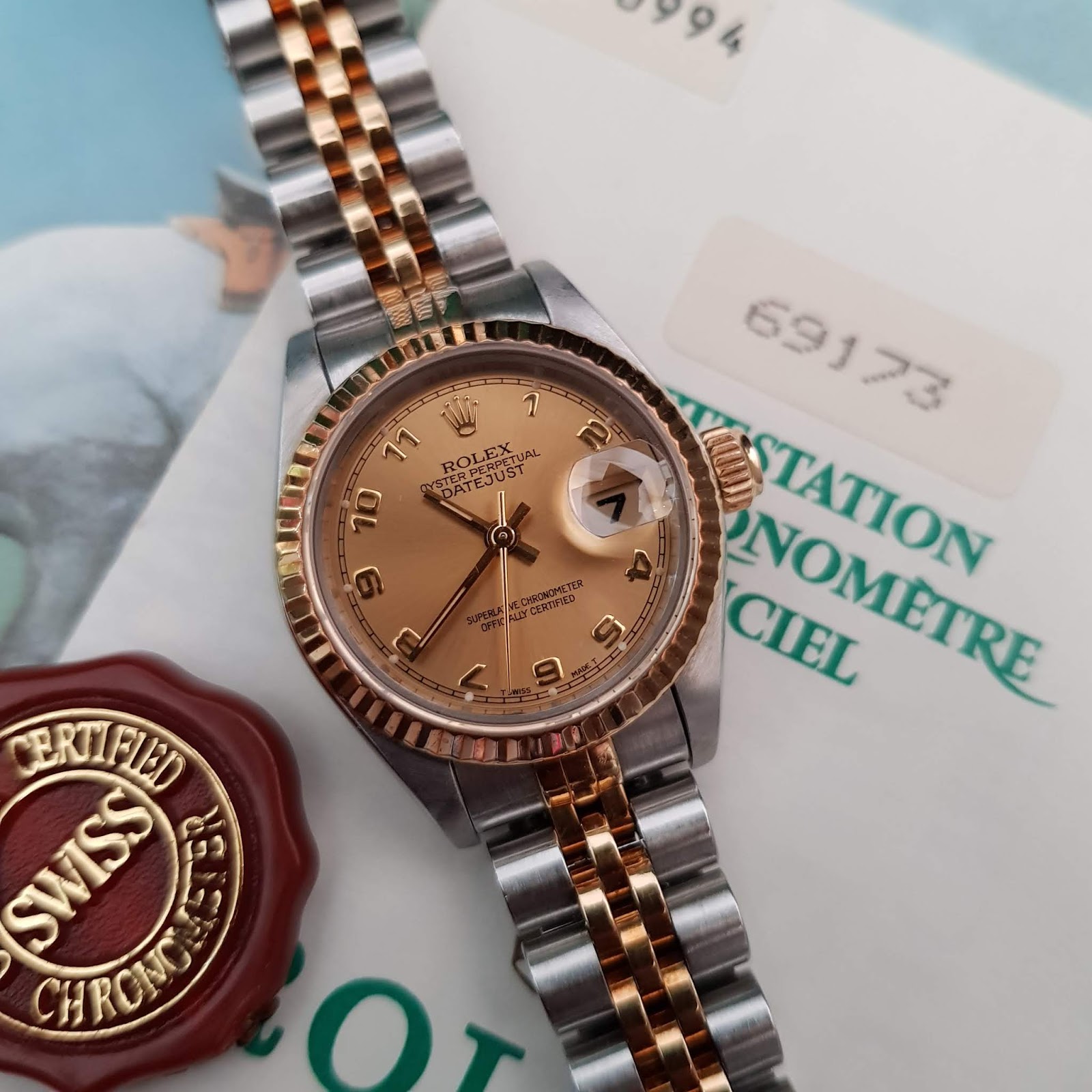 Jual Beli Tukar Tambah Service Jam Tangan Mewah Arloji Original Buy Sell Trade In Service Sold Rolex Datejust Two Tone Ladies Ref 69173 Champagne Dial With Arabic Numerals Hours Markers Jubile Bracelet 26mm S Series