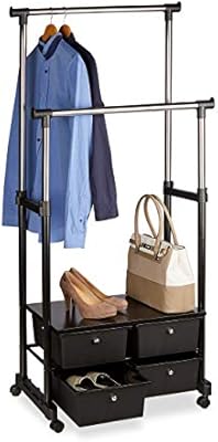 Relaxdays Ayakli Askilik Stabil 4 Cekmece Raf 2 Elbise Askisi Cubugu Yuksekligi Ayarlanabilir Metal Siyah Amazon Com Tr