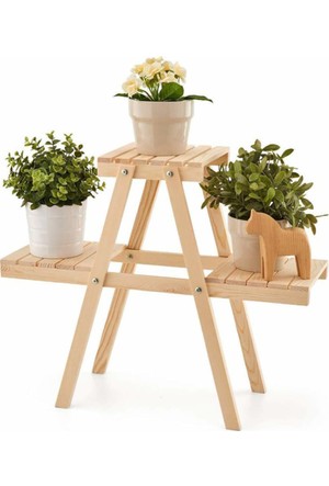 Cok Katli Ciceklik Ahsap Dekoratif Saksi Standi Sol Gorunum Ham Modeli