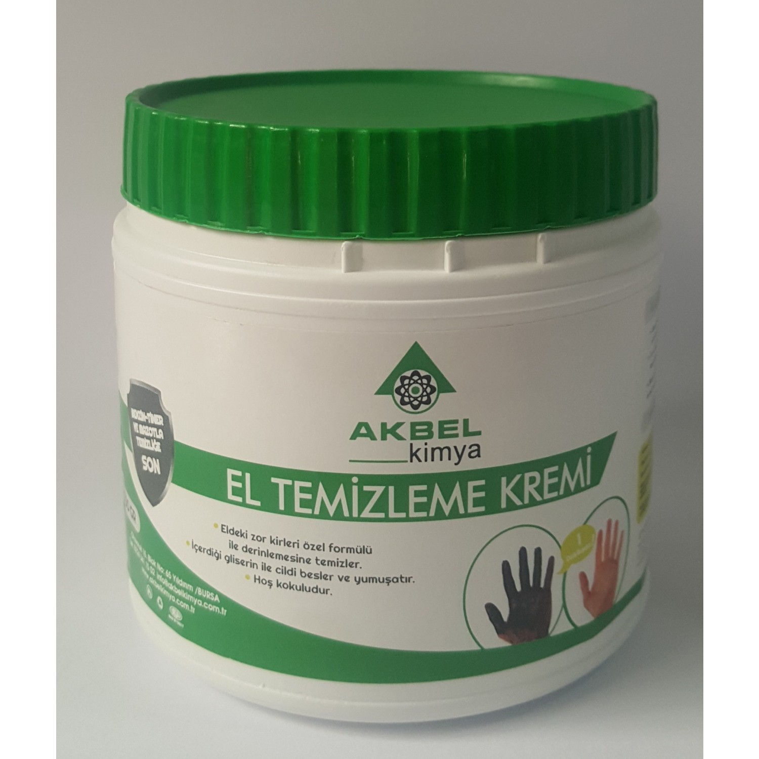 Akbel el temizleme kremi. Akbel kasaplar ve balıkçılar için el temizleme kremi 500 gr. Novipet wipe el temizleme kremi sıkma 500 gr. 2 5 kg pompa aparatlı granüllü sanayi tipi el temizleme kremi özellikle servislerde atölyelerde fabrikalarda matbaalarda ve her türlü üretim tesisinde ağır metal yağ ve kirler nedeniyle eller ve tırnaklarda oluşan normal sabun ile çıkmayan kir yağ ve boyaları çıkaran kremdir cildi. Ellerin kirlilik derecesine göre 2 3 gr akbel el temizleme kremi alınır iki el arasında yedirilerek ovuşturulur 1 dakika bu işleme devam edilir eller bol su ile yıkanarak kirin elden akması sağlanır ilık veya sıcak su kullanımı kremin temizleme etkisini arttırır sonrasında eller bir bez ile kurulanır.