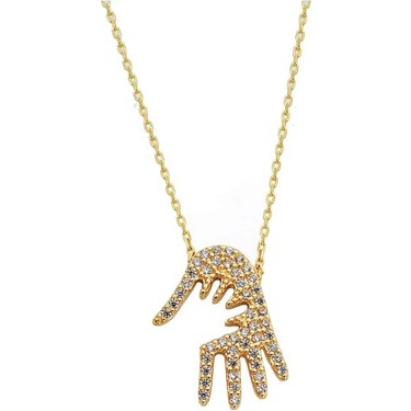 925 Ayar Gumus Zirkon Tasli Anne Bebek Eli Kolye
