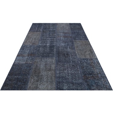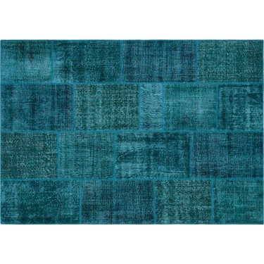 160x230cm Deniz Mavi Duz Patchwork El Dokuma Hali Bademler Zemin