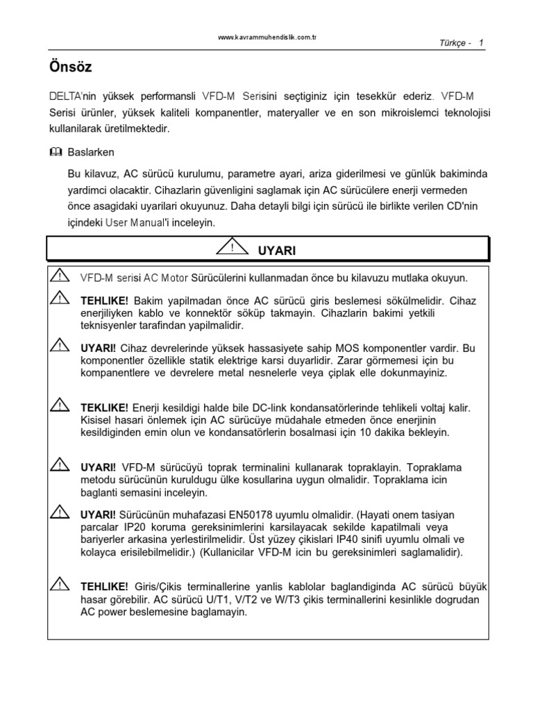 Revizyon 10 2005 bq03 sw v4 08 türkçe 1 önsöz delta nın yüksek performanslı vfd b serisini seçtiğiniz için te şekkür ederiz. Delta nın üstün performanslı vfd el serisini seçtiğiniz için te şekkürler. Delta nın yüksek performanslı vfd e serisi sürücüleri seçti ğiniz için te şekkürler. Vfd s serisi ürünler yüksek kaliteli komponent materyal ve mevcut en yeni mikroi şlemci teknolojisi kullanılarak üretilmektedir.