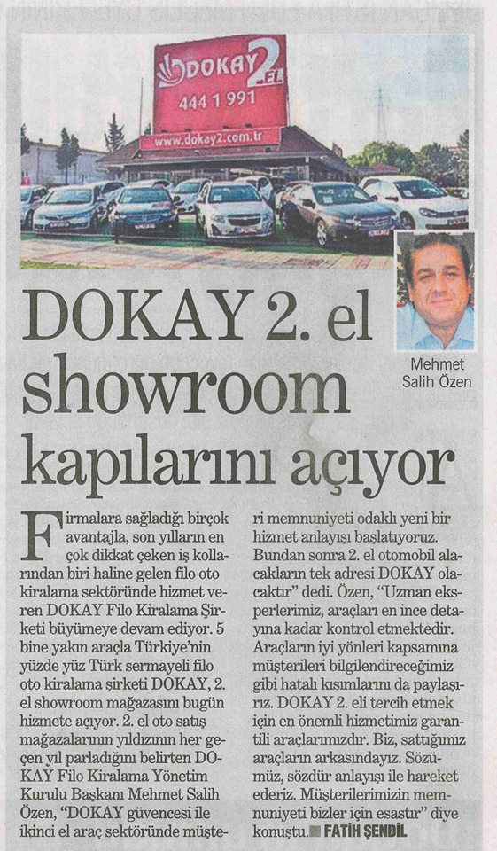 Yetki belgeli i̇şletme ünvanı adnan özen i̇nşaat taahhüt enerji turizm ve sanayi anonim şirketi dokay 2 el şubesi. El olarak müşterilerimizin gönül rahatlığı ile ikinci el araç alıp satabilecekleri imkanlar sunuyoruz. Dokay güvencesi ile ikinci el araç sektöründe müşteri memnuniyeti odaklı yeni bir hizmet anlayışı başlatıyoruz. Dokay ın çeşitli şehirlerde sahip olduğu iade ofisleri bu gibi anlarda müşterilerine aradıkları hizmeti sunmaktadır.