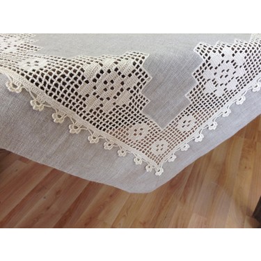 Oya El Orgusu Dantel Aplikeli Keten Kare Cay Ortusu 90 X 90 Fiyati