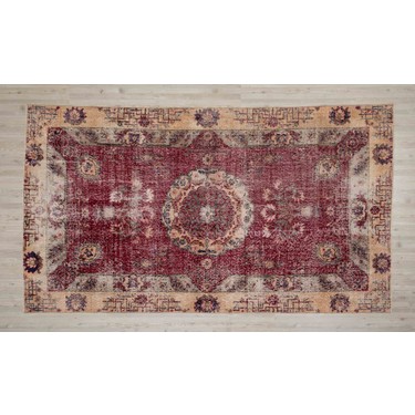 Ayrıca modern vintage tarzında kenarları düzeltilmiş traşlanmış ve yıkanmıştır. Halı dokunurken hiç bir aşamada makine. özel vintage eskitme el dokuma halı 136x236.