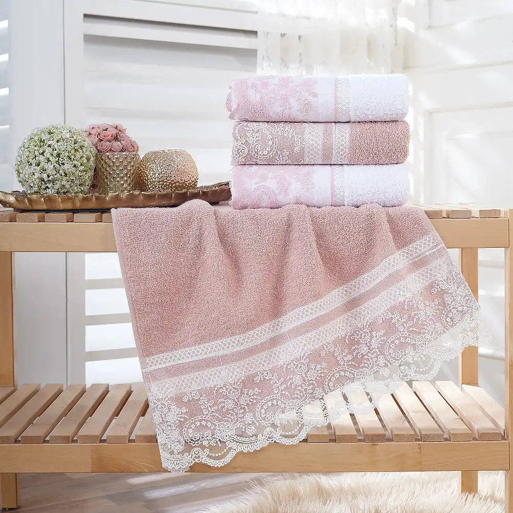Carmen Dantelli El Ve Yuz Havlusu Seti 100 Pamuk