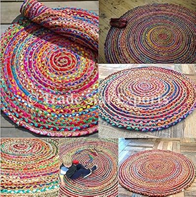 17 4 Cm Yuvarlak Orgu Hali Paspas Etnik Hint El Isi Hali Dekoratif Cok Renkli Halilar Oturma Odasi Amazon Com Tr