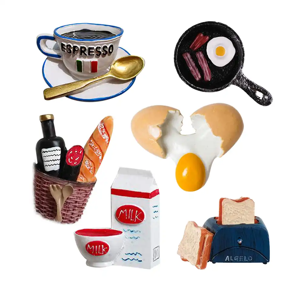 El Yapimi El Boyali Recine El Sanatlari Sevimli Gida Desen Miknatis Buzdolabi Miknatisi Ekmek Sut Pastirmali Kizarmis Yumurta Tava Buzdolabi Miknatisi Duvar Cikartmalari Aliexpress
