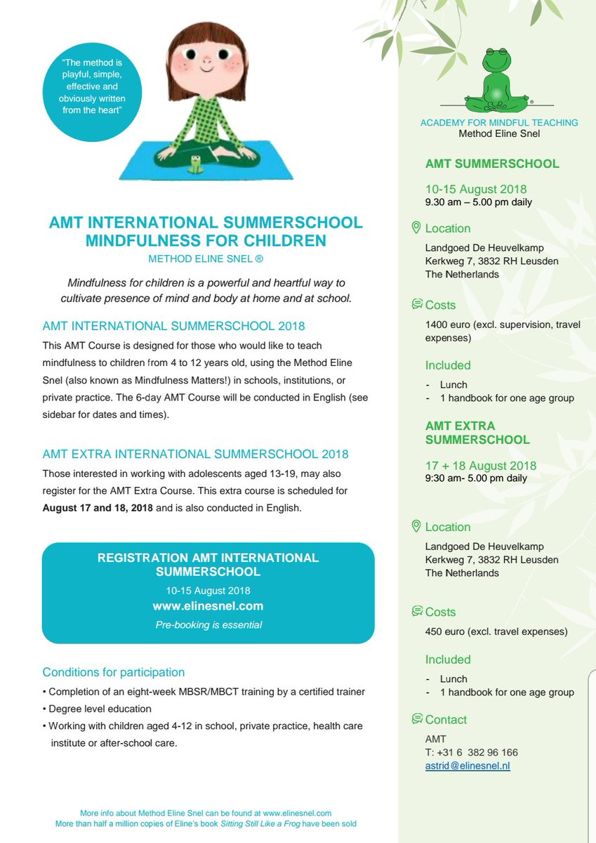Eline snel a développé un programme laïque à destination des enfants et des adolescents de 4 à 19 ans. Eline snel has developed several training programmes and four handbooks for different age categories from 5 to 19 years of age. Welkom bij van eline snel centrum voor mindfulness verdieping en bezinning mindfulness voor kinderen en pubers academie voor mindful teaching in leusden amersfoort utrecht.