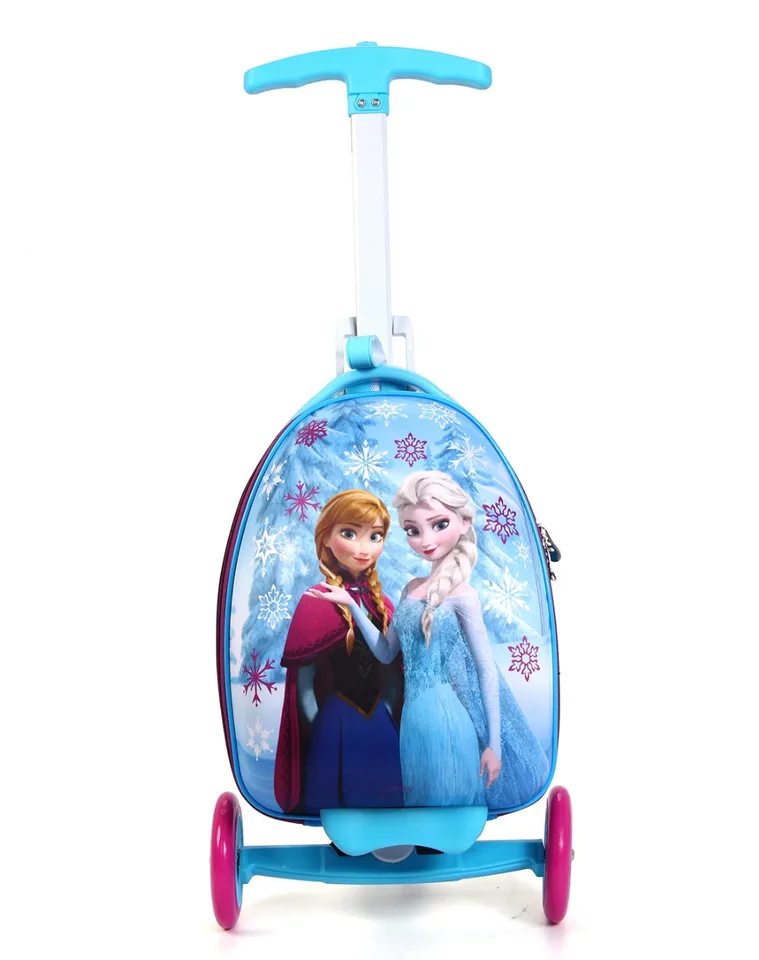 This quality luggage item is also a scooter for getting around come with a comfortable handle is waterproof. It provides a maximum speed of 2 5 miles per hour. Disney frozen 6 volt 3 wheel scooter battery powered ride on. Disney frozen 2 elsa epilogue costume size 6 8 30.