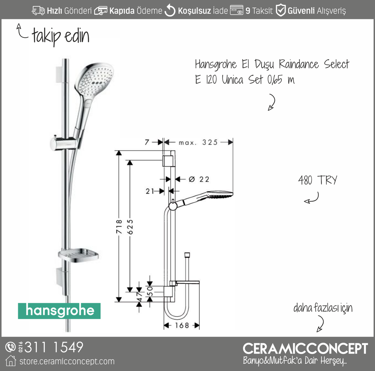 Hansgrohe Raindance Select E150 3jet El Dusu Beyaz Fiyati Taksit Secenekleri