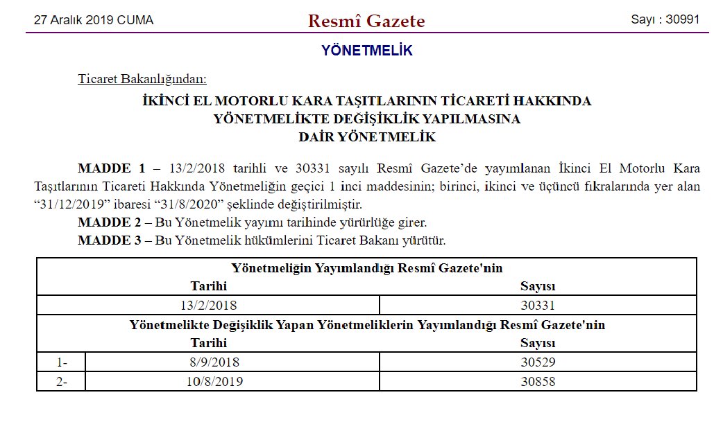 Ikinci El Arac Satacaklar Dikkat Sure Yil Sonuna Kadar Uzatildi