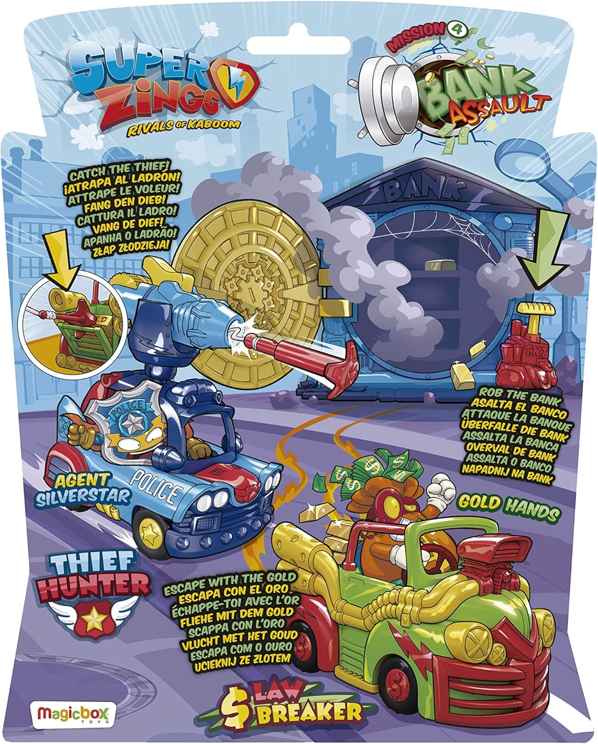 Amazon Com Superzings Series 5 Blister Mission Bank Asault Pszsb216in40 Includes 2 Figures And 2 Vehicles Toys Games