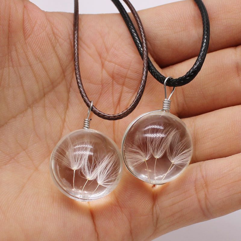 Satin Al Cam Uzun Zincirli Kolye El Yapimi Dogal Karahindiba Salkim Pu Deri Kordon Cam Sise Kurutulmus Cicek Kolye Dogal Karahindiba Tohum Tl6 7 Dhgate Comda