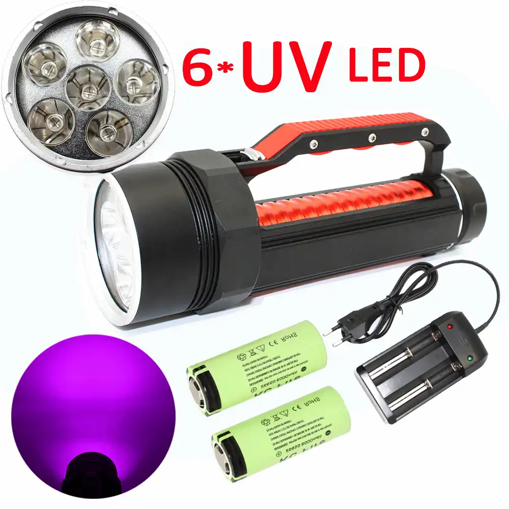 395nm 6x Uv Led Dalis El Feneri Sualti Ultraviyole Mor Isik Lambasi Su Gecirmez Dalis Torch 2x22650 Pil Sarj Cihazi Led Fenerler Aliexpress