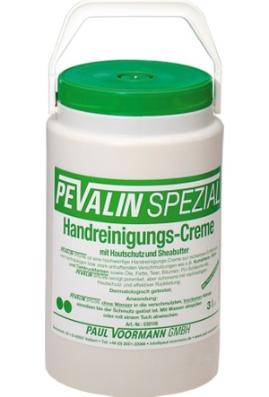 1964 yılından beri tüm avrupa da endüstriyel el temizleme kremi cilt temizliği ve korumasında lider marka pevali̇n in dermatolojik olarak uygunluğu alman dermatest kliniği tarafından onaylanmıştır. Pevalin pevastar el temizleme kremi. 59 00 46584 puan. Pevali̇n spezi̇al elleri̇ni̇zi̇ islatmadan eli̇ni̇ze yaklaşik 3 gram pevali̇n alin ki̇rleri̇n çiktiğina emi̇n oluncaya kadar bastirmadan ovalayin durulayin elleri̇ni̇zde oluşacak koruyucu kremi̇ çikarmayin.