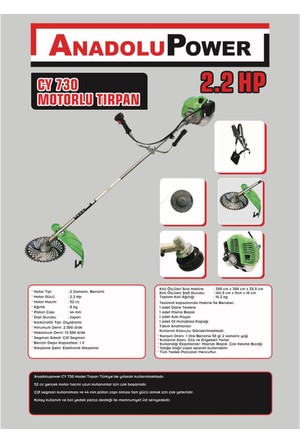 El testeresi ve eldiven hediye. Kullanılan güç tipine göre tırpanlar benzinli elektrikli ya da akülü olabilir.