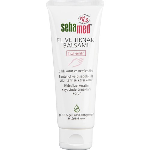 Sebamed el ve tırnak balsamı içeriğindeki pantenol ve allantoin ile cildi nemlendirmeye yardım eder. Sebamed el tırnak balsamı ürünü ile ilgili soru şikayet olumlu veya olumsuz yorum yapılmamış. Ph 5 5 değeri sayesinde cildin doğal koruyucu asit tabakasını destekler. El ve tırnak bakımı ürün kodu sbm4103040160379.