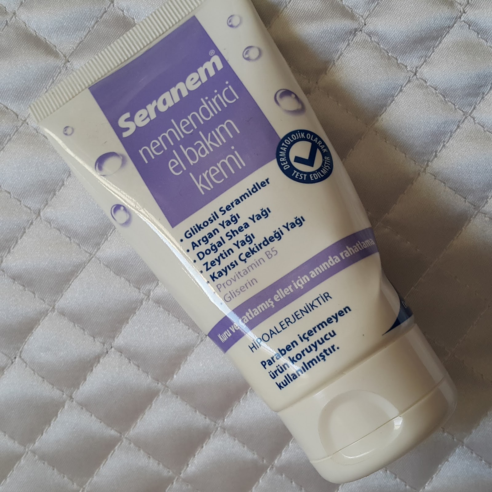 Paraben ve üre içermez. Yoğun nemlendirir onarıcı ve besleyici etki gösterir. Cilt kremi veya losyonlarında. Seranem nemlendirici el ve vücut bakım kremi 75 ml 8692780000367.